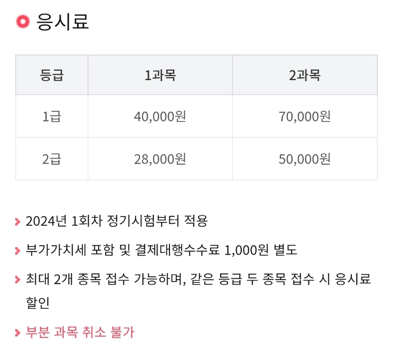 ERP회계1급 시험 접수비는 한국생산성본부 규정에 따라 변경될 수 있으므로, 시험 접수 시 반드시 확인해야 합니다. (2025년 2월 21일 기준, ERP정보관리사 회계1급의 응시 수수료는 40,000원입니다.)